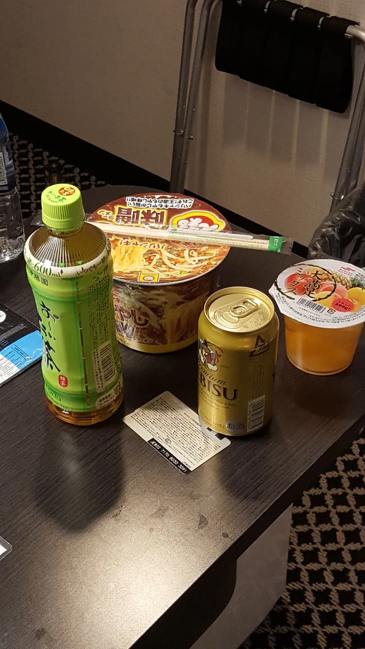 And I arrived at the hotel and had Japanese cup noodles and beer for dessert. I bought it and ate it, but I threw it away because it tasted bad and beer was not as good as the day so I ate jelly and slept. Ha ha ha, ha, ha, ha, ha.