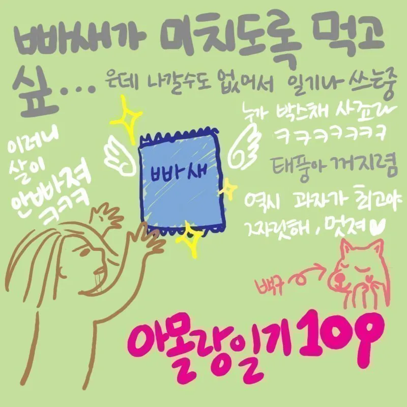 어제 빠새가 먹고 싶다는 포스팅을 올렸는데 생각보다 빠새를 모르는 분들이 많아서 많은 공감을 얻지 못했어. 그래서 쵸큼 슬펐달까? 끙. . . . 빠새이야기는 자제하기룽. 요즘 밤만 되면 과자나 단것들이 너무 먹고 싶어. 이렇게 돼지가 되어가는 것일까? 안되는데 말이지. 참고 또 참아야 정상체중을 유지하는 거 아니겠어? 사실 먹어도 상관은 없지만. 운동을 한다면 말이야. 운동안하고 먹기만 하면 다시 살이 찔꺼야. 그럼 난 슬퍼지겠지.