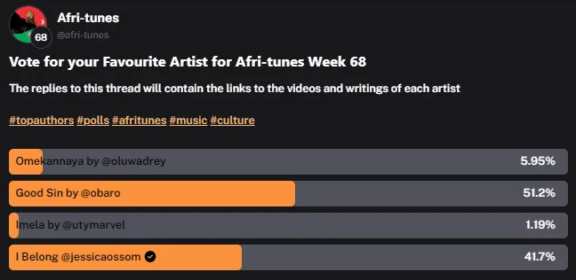 ![]() | Check out this week's Tuners | Winner: @obaro with a cover of GOOD SIN COVER BY D4MUSIC |