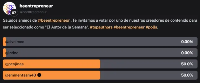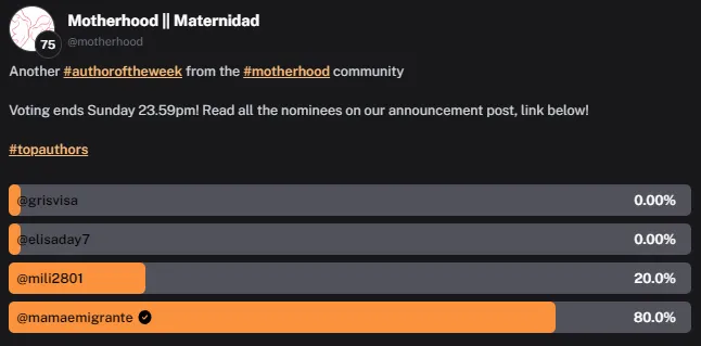 We had more than 490 votes to choose the authors of this week in a decentralized way, in twenty one communities who published their "Author of the Week" contenders on a decentralized poll, and the community spoke out and picked their favorite author!