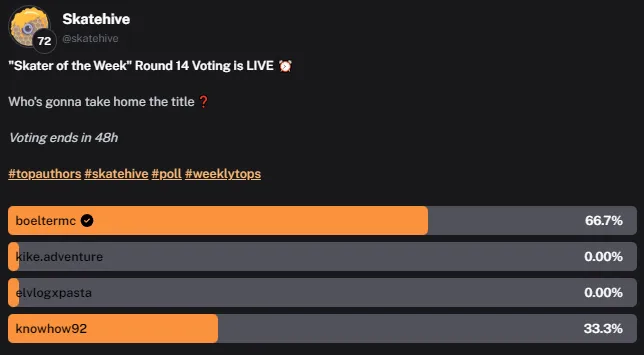 ![]() | Check out this week's Skaters | Winner: @boeltermc with Alone in Madureira |