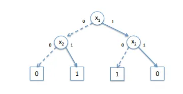 Look at the BDT for a XOR Function (x1⊕x2) for example: