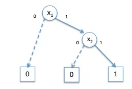 So, an BDD for an AND Function (x1ANDx2) looks like this: