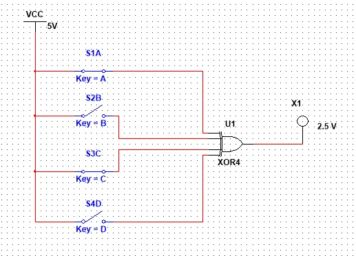 Let's now lastly, implement a Multi-Input Gate. I think the best one would be a XOR or XNOR Gate so that we check our Rule of odd and even 1's. So let's implement a XOR 4 Gate and see if it's true!