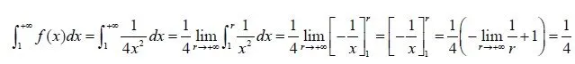 So, because of the Integral/Series Convergence Test the Integral of the same sequence an = 1/4x^2 in the same range [1, +∞) also converges.