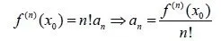The power series with center x0 that represents f(x) is called the taylor series of f and looks like this: