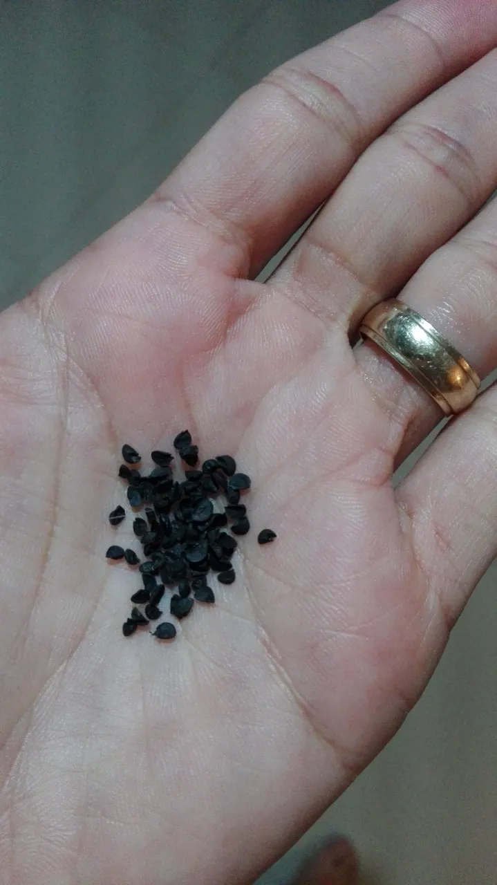 This is a photograph taken of the seeds before they are sown, there you can see that they are black and very tiny, which you have to work meticulously.