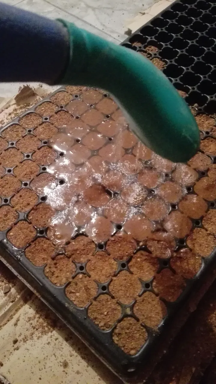 Aqui ya podemos ver el semillero listo con su tierra bien compacta lista para recibir el agua caliente que se le aplica previamenta para matar cualquier hongo, bacteria y desinfectarla bien, una vez que se haya enfriado la tierra se procede a hecharle agua nuevamente pero a temperatura ambiente, este es un pprocedimiento escensial antes de la siembra.