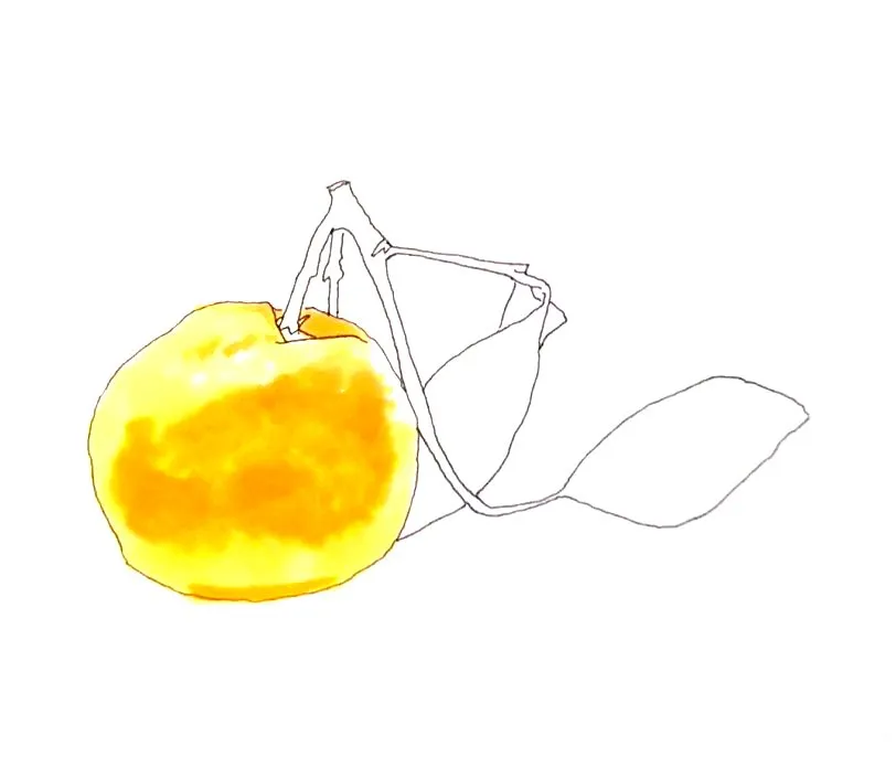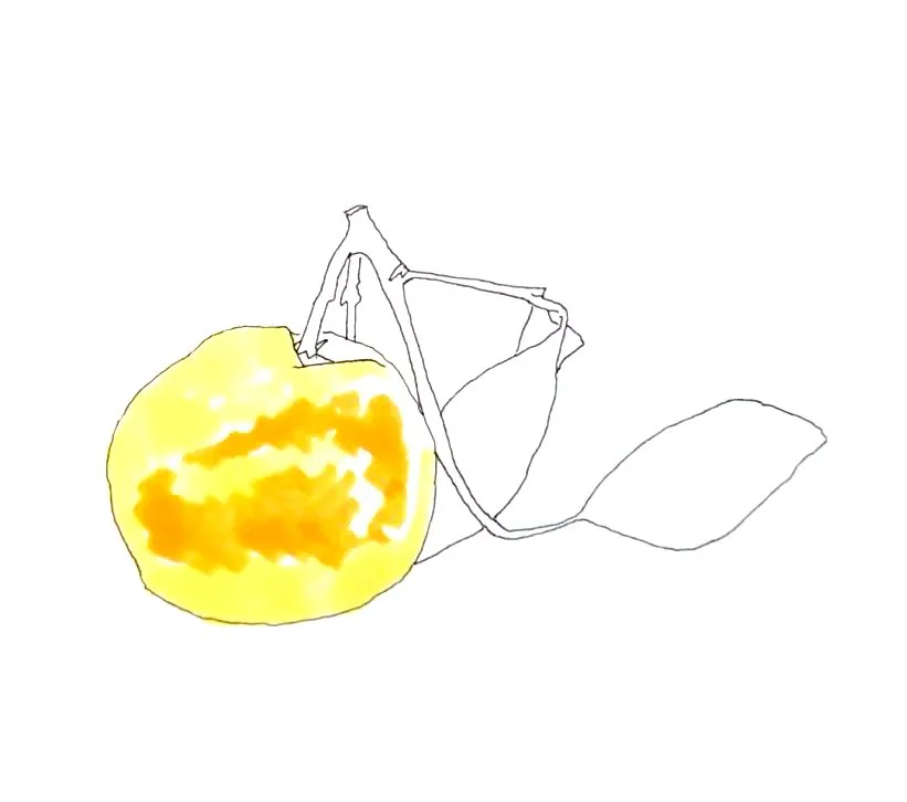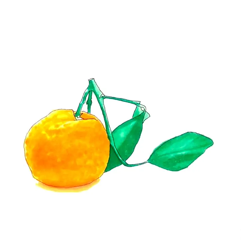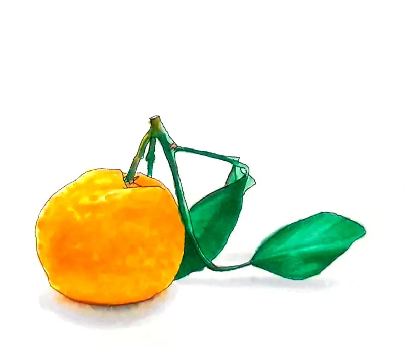 I draw a tangerine with a black liner of 0.05 mm. I select only the contour and some details on the branches and the top of the mandarin.