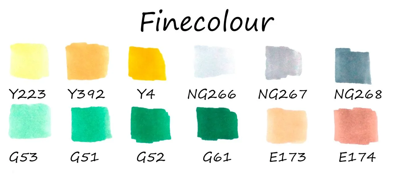 Turn to the leaves. With the marker G53 I paint the light part, with the marker G51 dark.