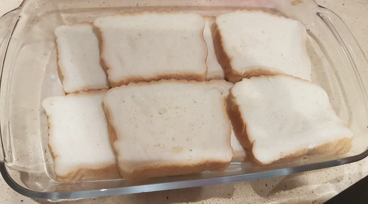Vamos sumergiendo el pán y dejando que se empape bien, una vez lo esté, los pasamos a otro recipiente limpio.