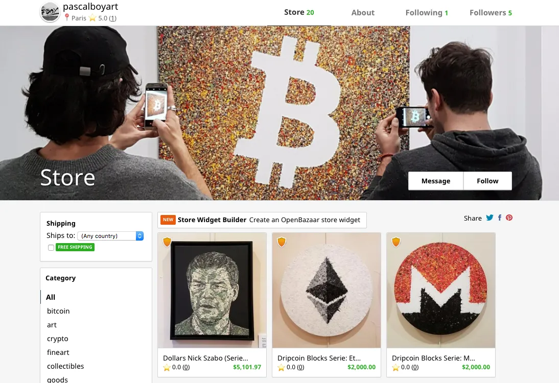 Pascal Boyart on OpenBazaar - Pascal Boyart is an accomplished fine artist based in Paris. He began as a graffiti artist but now produces a wide range of art styles. Many of the pieces he has featured on OpenBazaar focus on cryptocurrency and crypto-culture. Read more of his amazing story on his [About page]. For a limited time he’s offering 10% off on the limited edition prints Crypto Anarchist Manifesto and WhitePaper French version. Use coupon code: BTCARTREVOLUTION