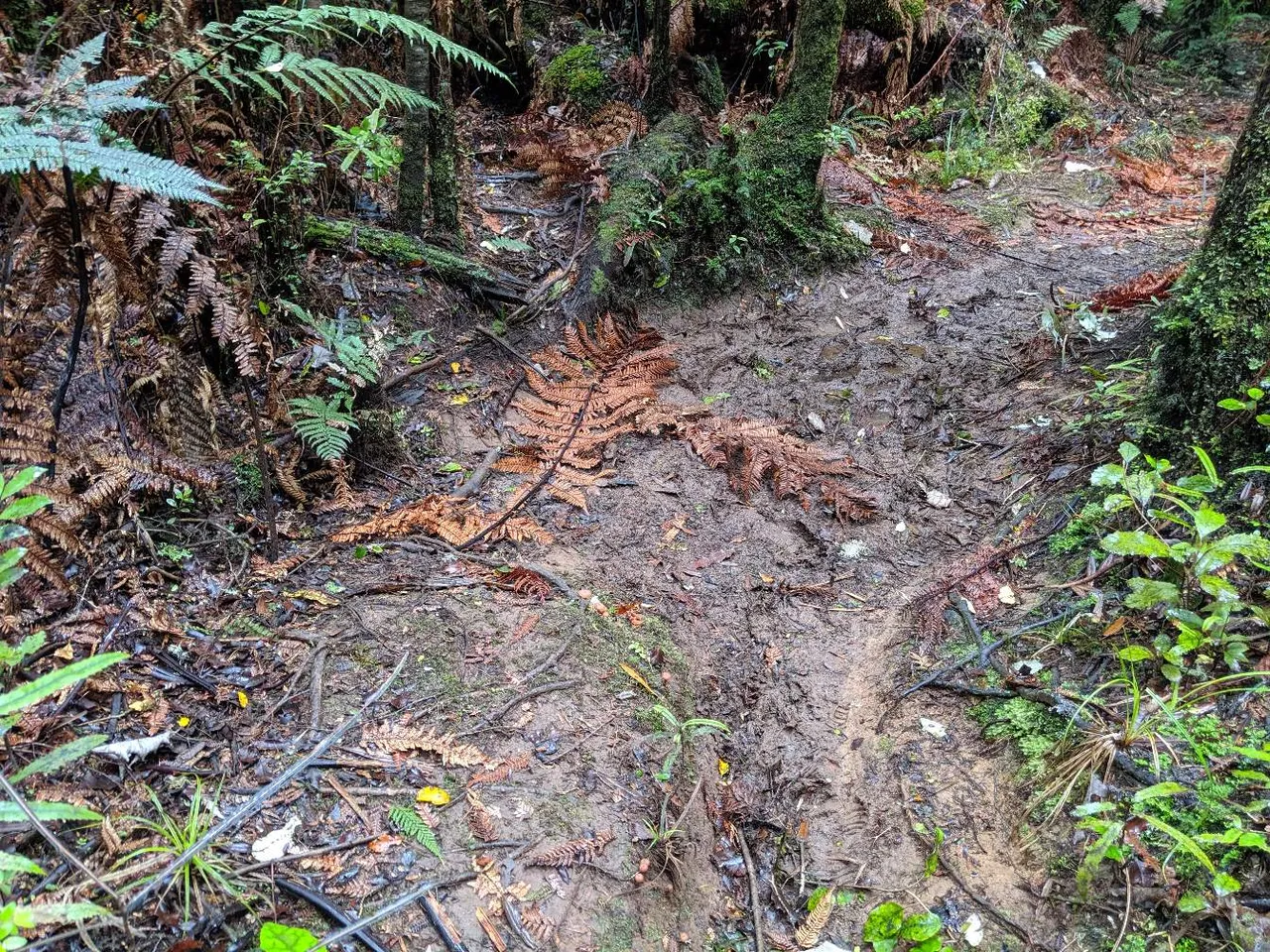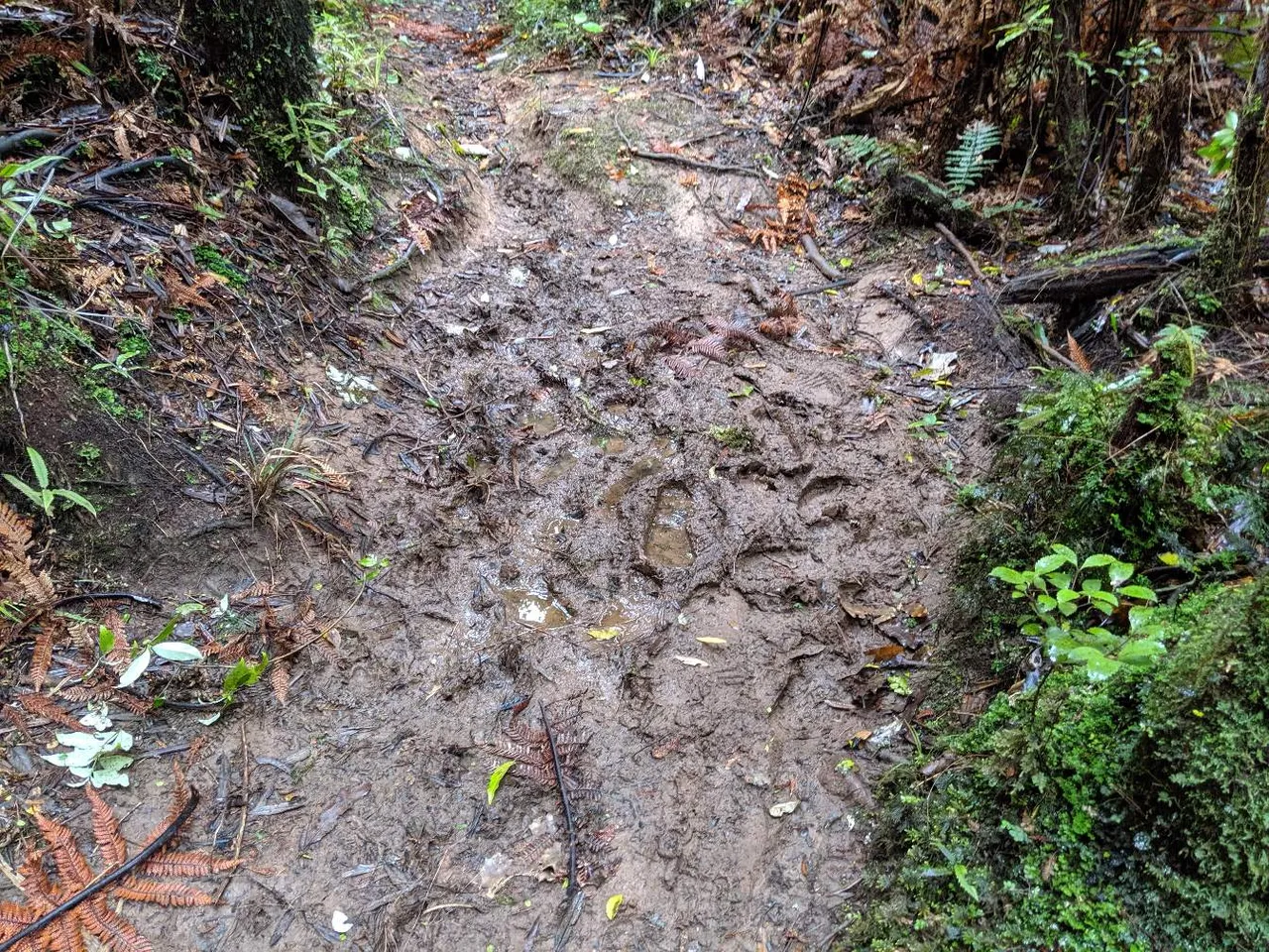 A local trick is to put a dead fern branch over the mud and walk quickly along the centre stem. A bit like snow shoes - you don't sink in so far. Still, I did get mud up to my mid calves.