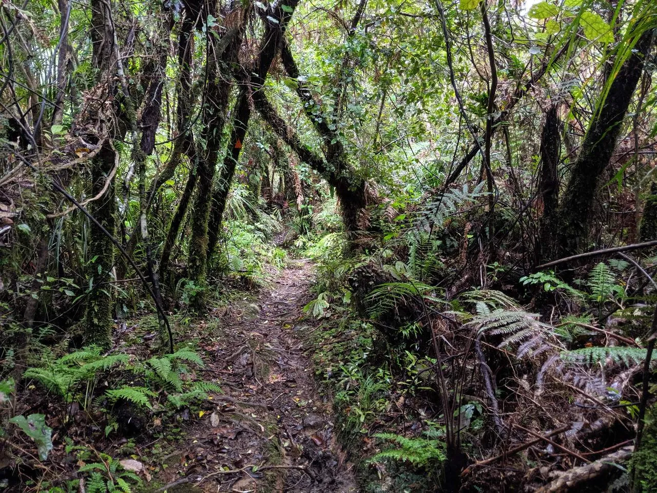 Can't say I was happy to be out walking. I did get to see a Tui bird though. The Tui is slightly left of centre if you zoom in. A passing kid thought it strange I was chewing Manuka leaves and I reaked of mint oil.