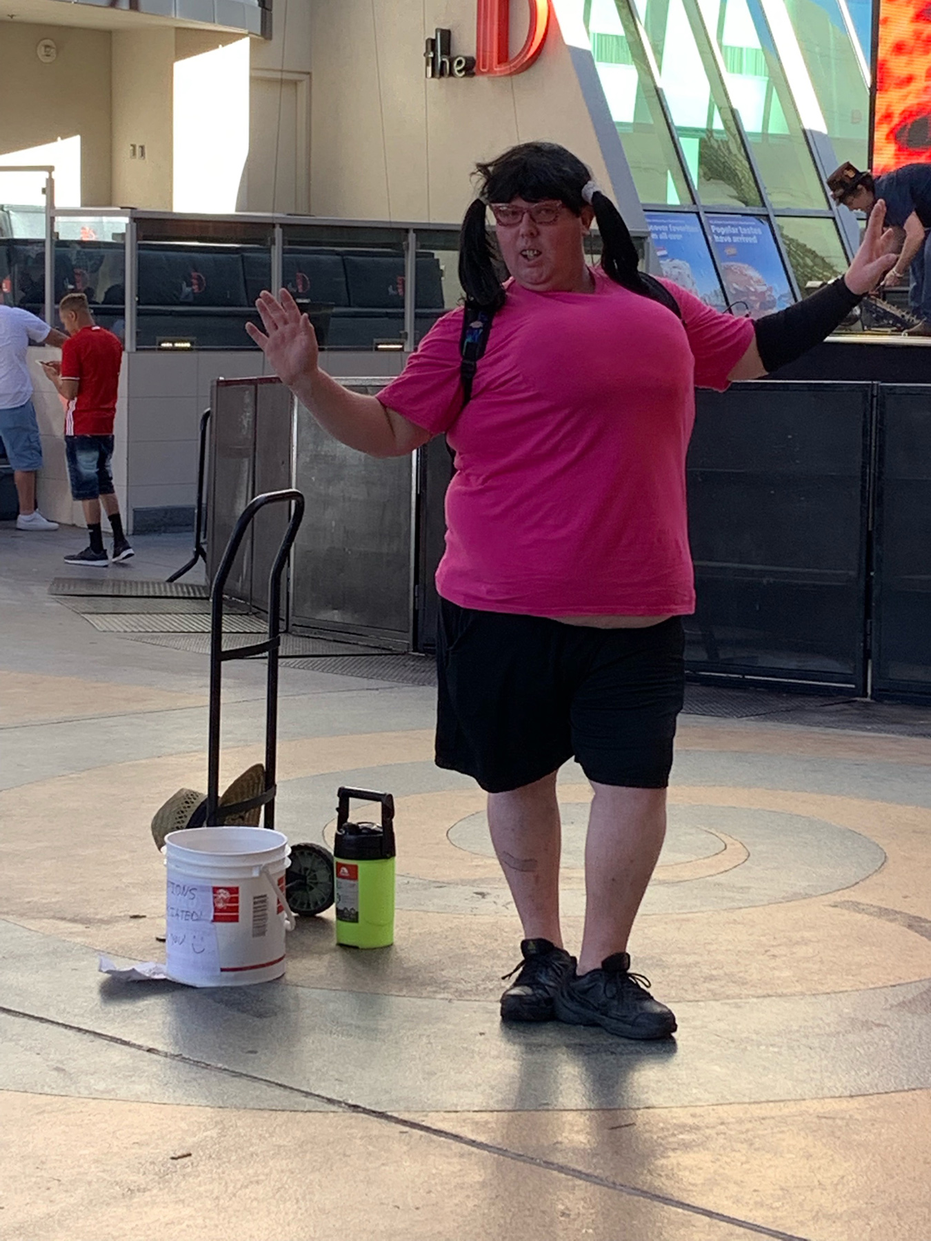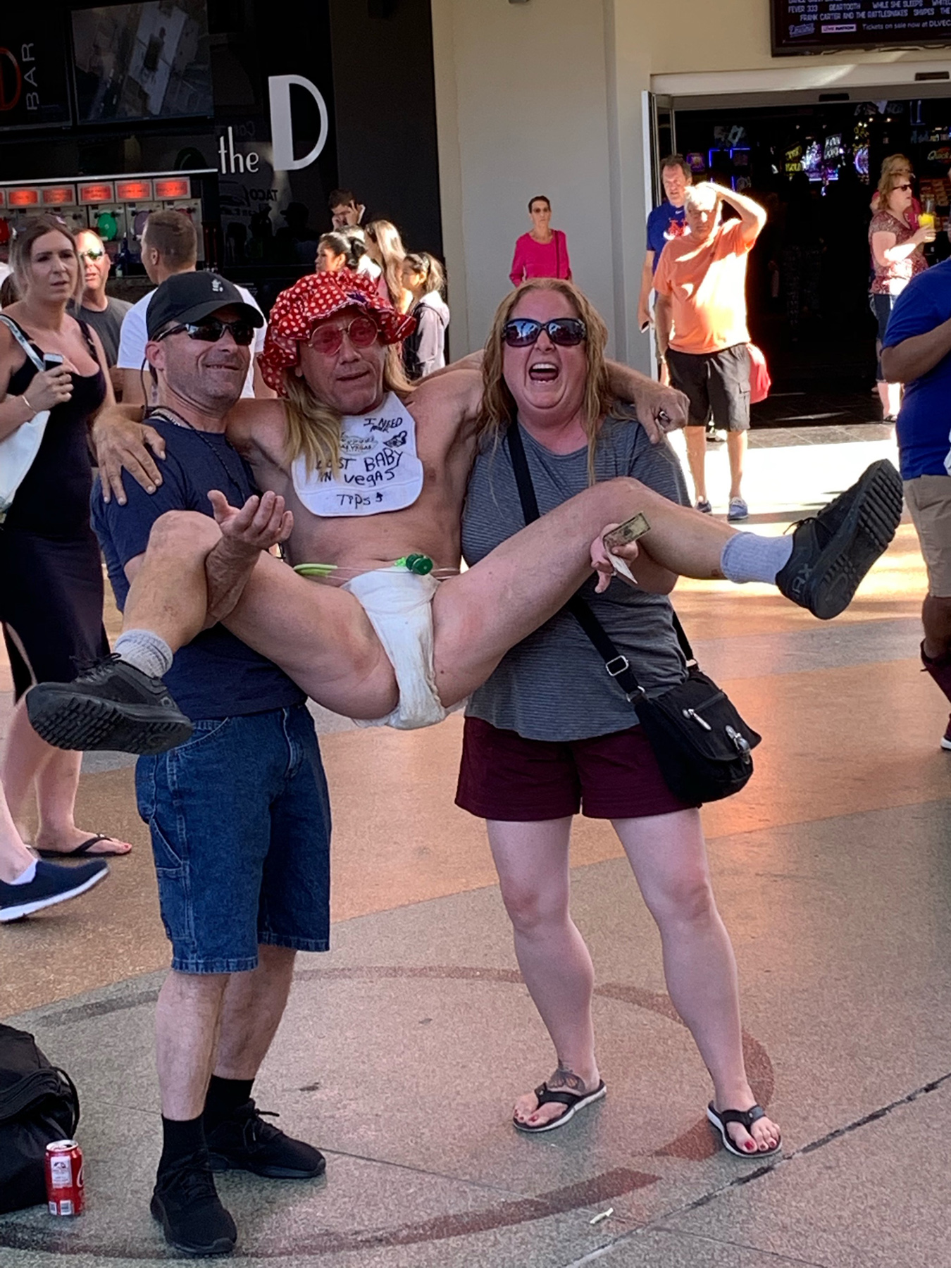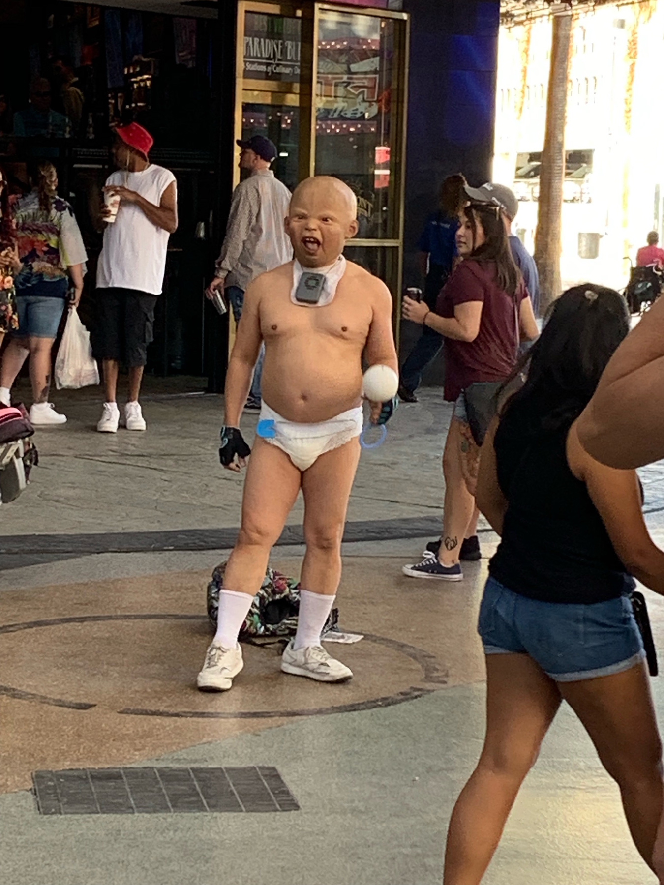 There were a bunch of adult baby men getting tips to have people take pictures with them.