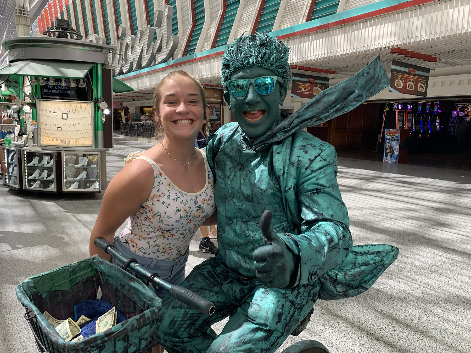 After our shitty nap, we got up ready to head out for the day again. We spent the morning at the pool which was kind of cool because it had a water park with slides, but everything got crowded quick, so we decided it was time to get some lunch and head to Fremont St, our favorite place in Vegas.