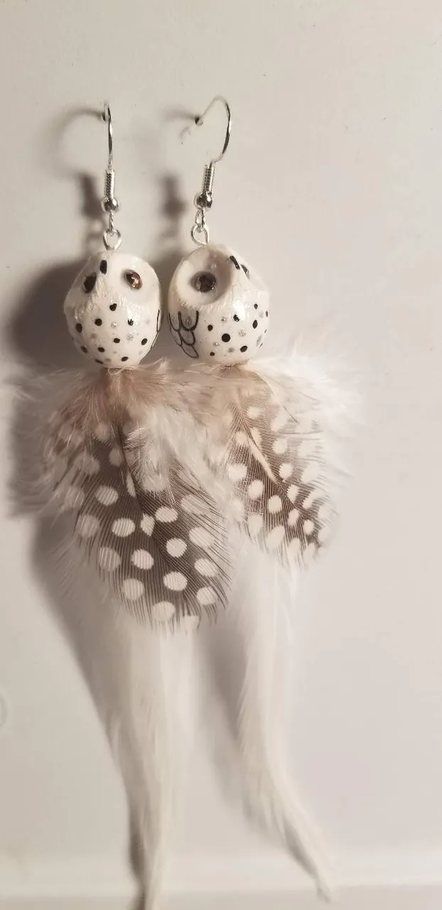 These are #handpainted #handmade #polymerclay #owl #earrings with #natural #featheredfriday