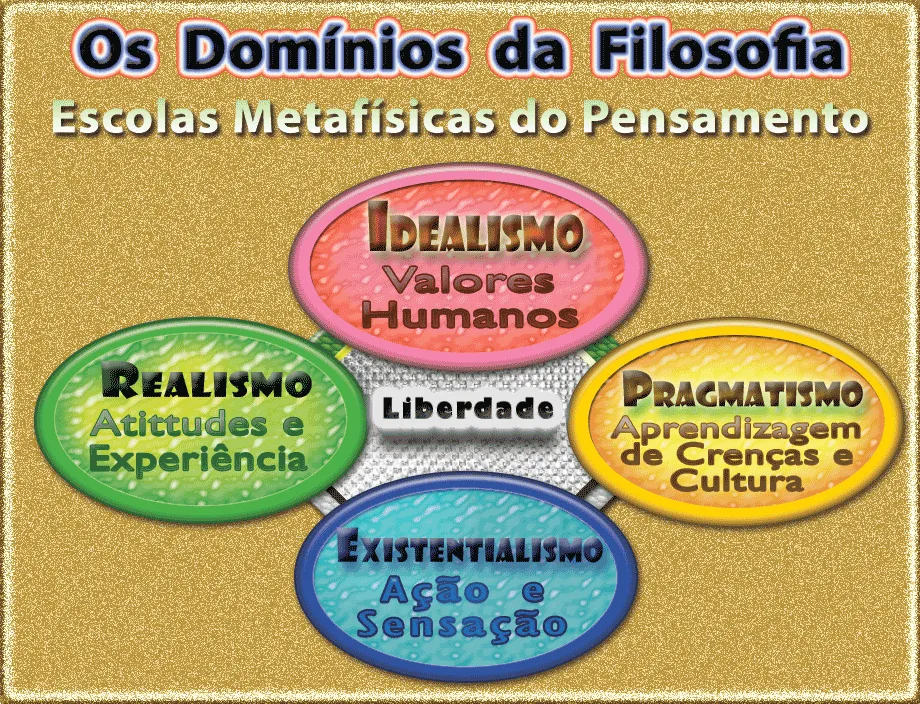 A filosofia Existencialista está ligada a outros domínios metafísicos do pensamento como o Idealismo (Platão) baseado em valores humanos, o Realismo (Aristóteles) analisando atitudes e experiências, e o Pragmatismo (experiencialismo) focado na aprendizagem das nossas crenças e da cultura.