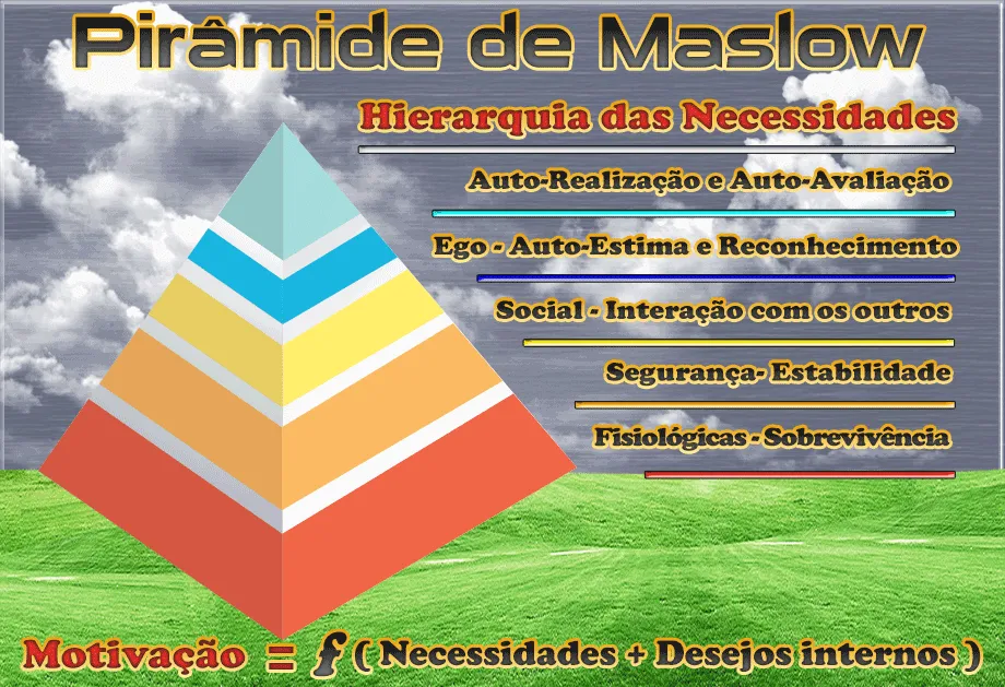 | Motivos | Pirâmide de Maslow | Necessidades |