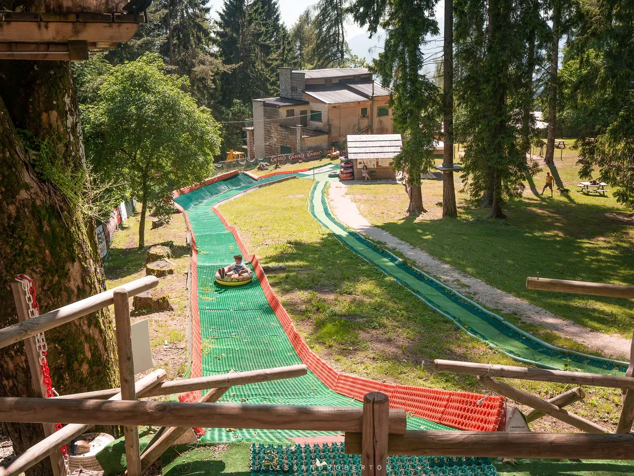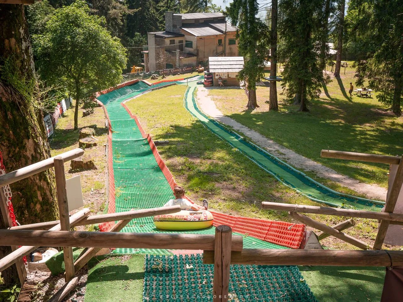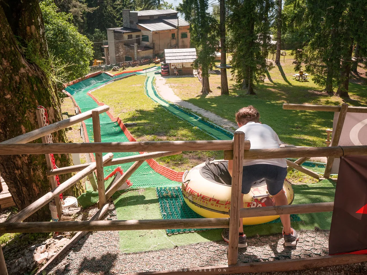 As written in the sign, I immediately arrived at the adventure park where some children have fun to go down a track with an inflatable dinghy.