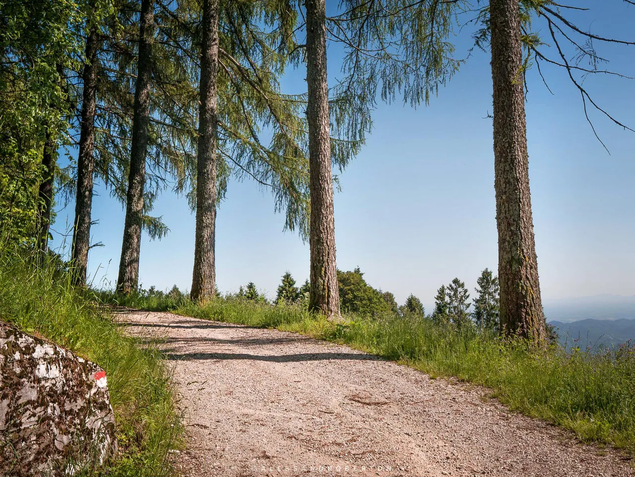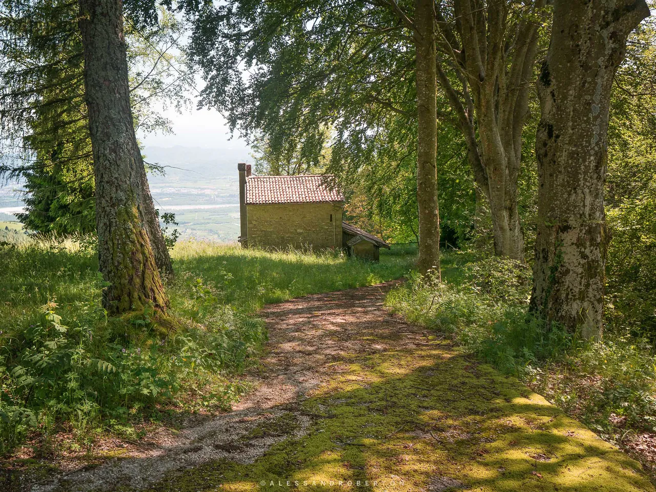 From time to time the surrounding landscape could be seen among the trees, I was climbing Mount Cesen.