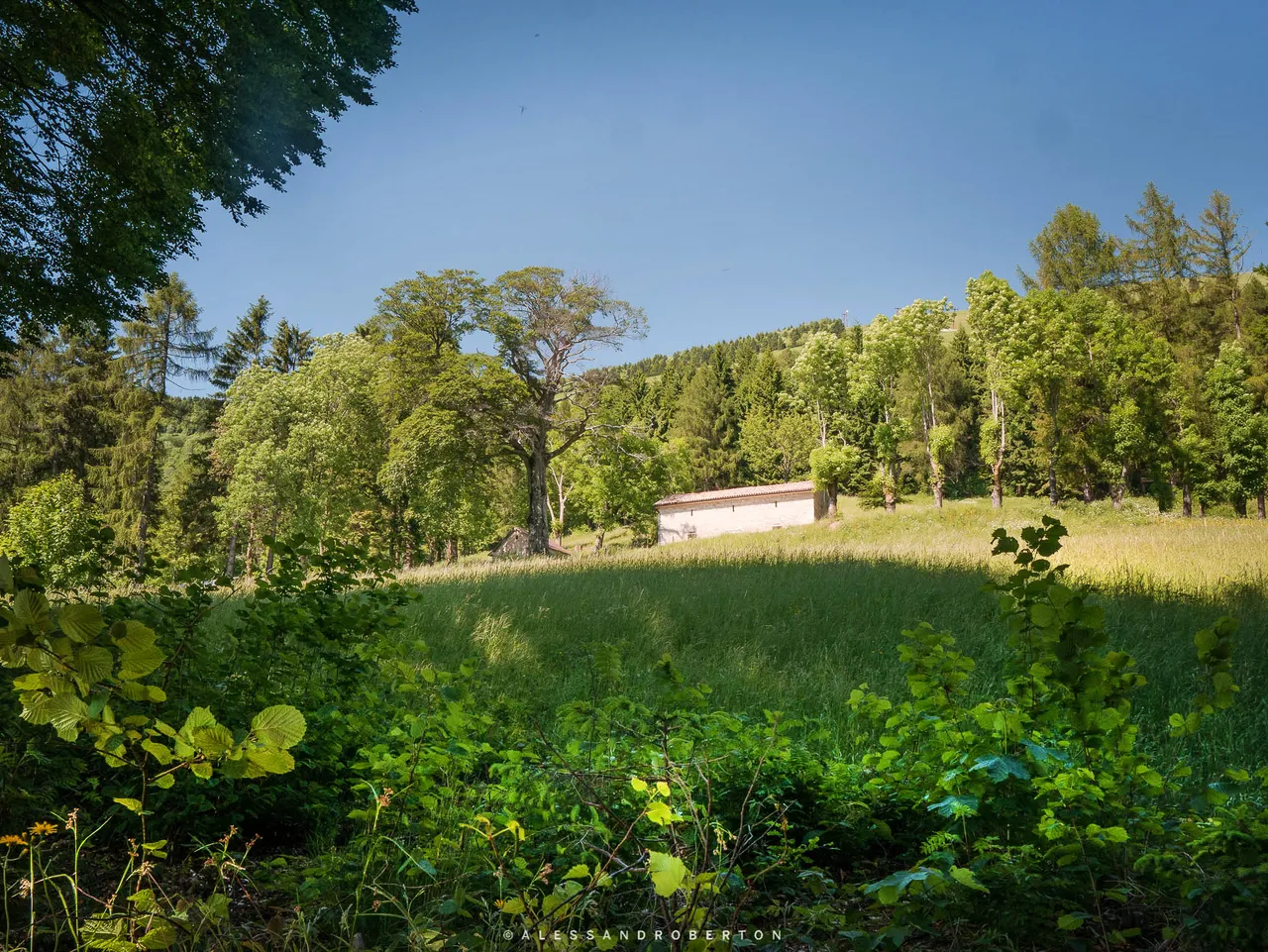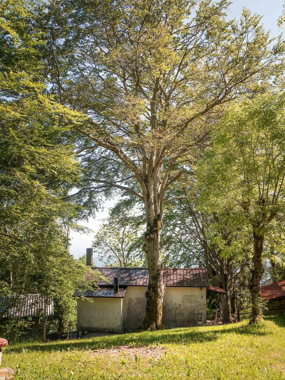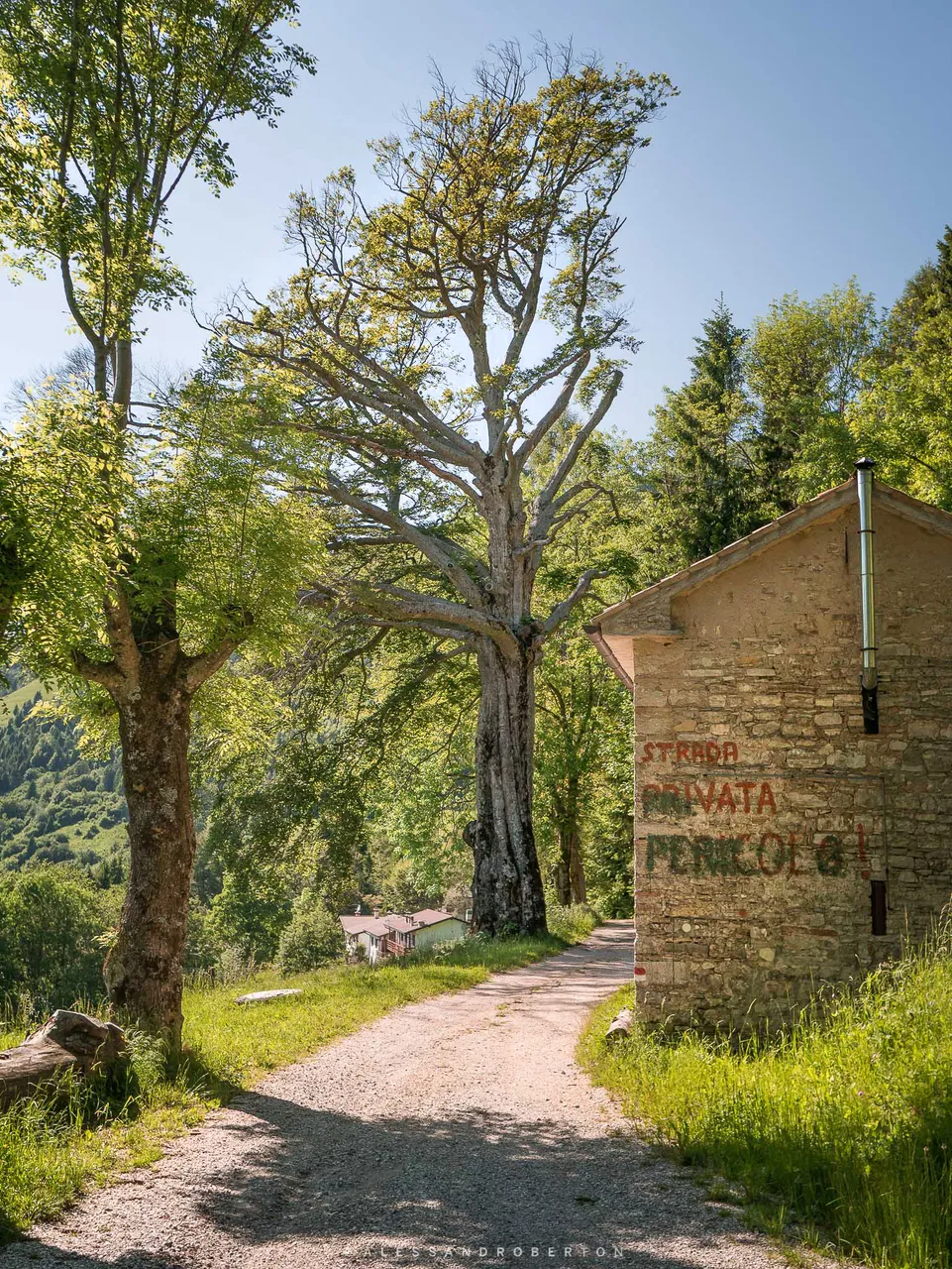 In un tratto di sentiero c'erano un gruppo di case circondate da frassini secolari!