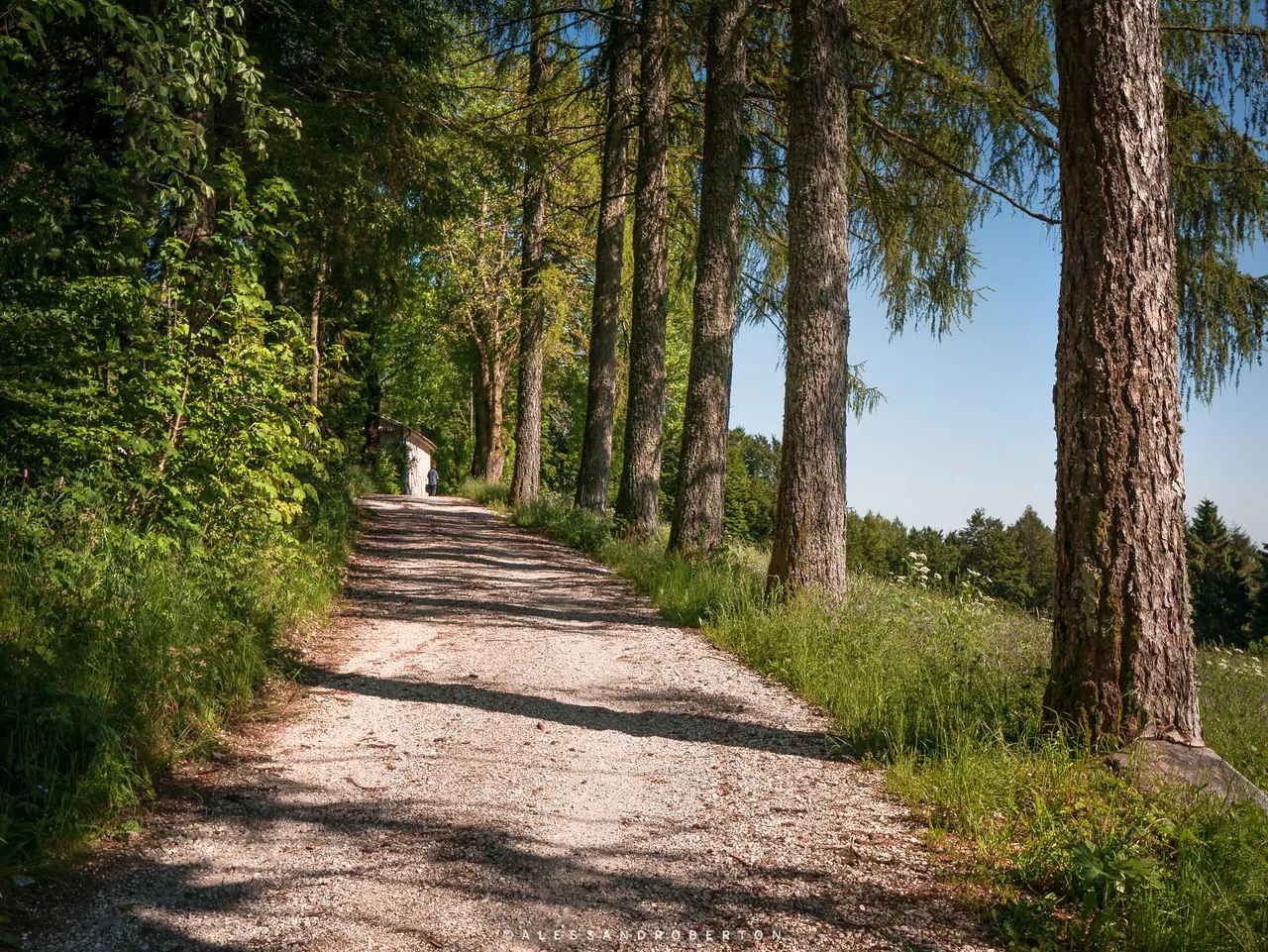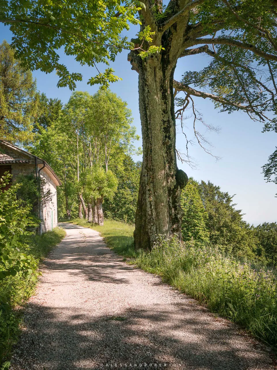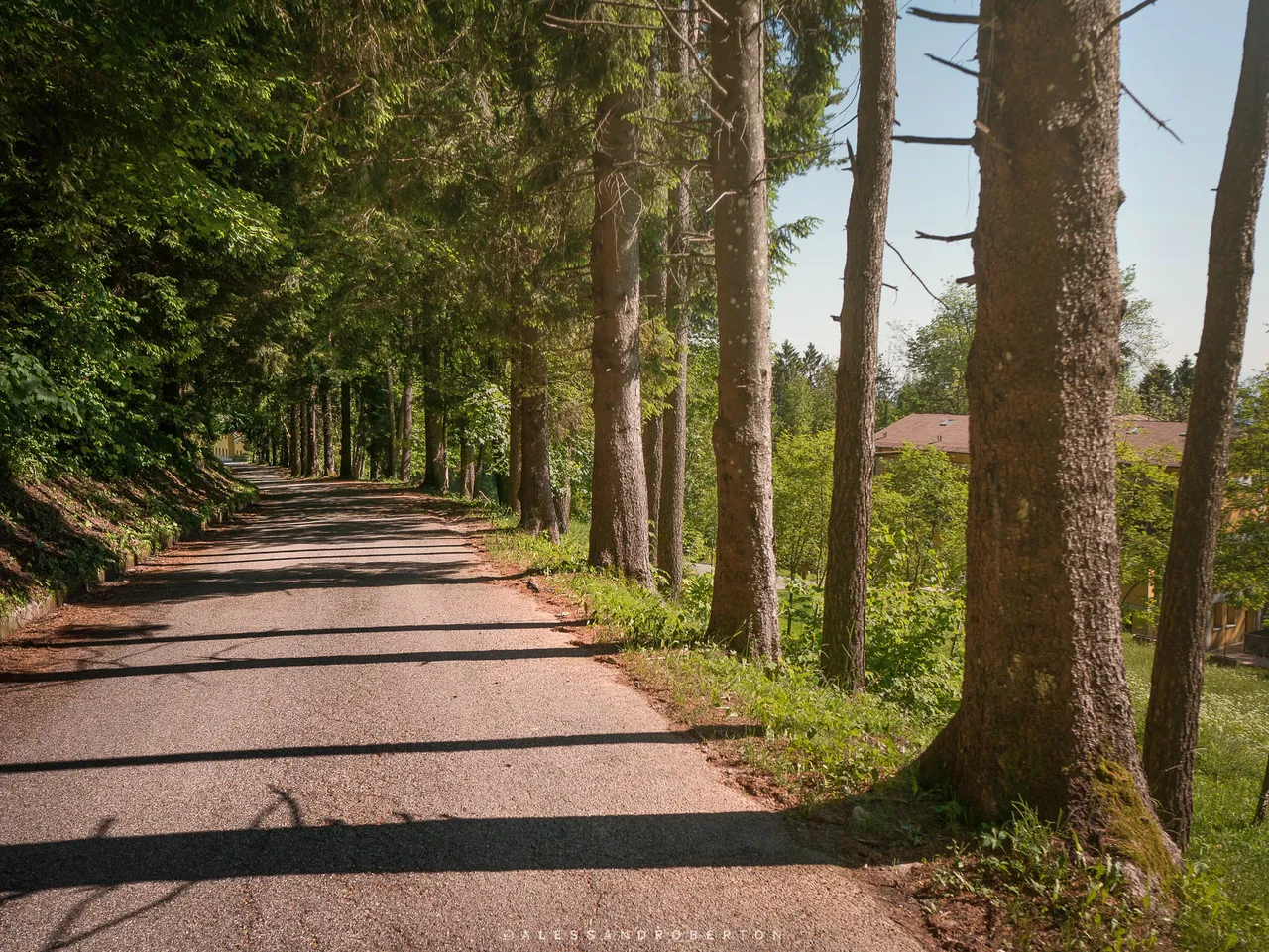 Un filare di abeti costeggiava la stradina sterrata e io mi godevo gli ultimi passi di quel bel pomeriggio.