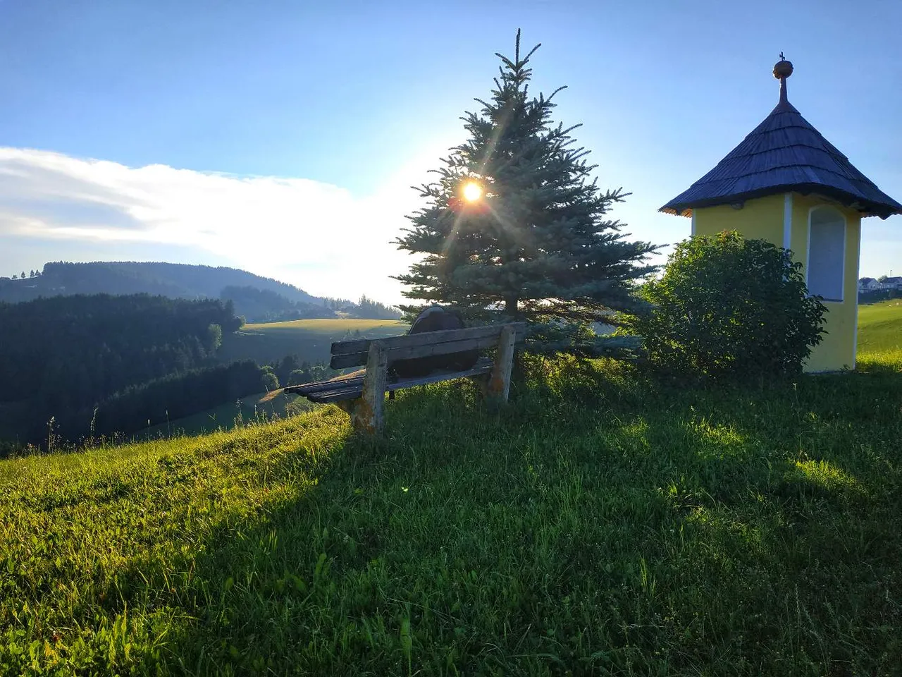 I am sitting here beside the road on a small mountain near the village Diex (https://de.wikipedia.org/wiki/Diex), and wait for the Sunset, which should begin at about 8:15pm.