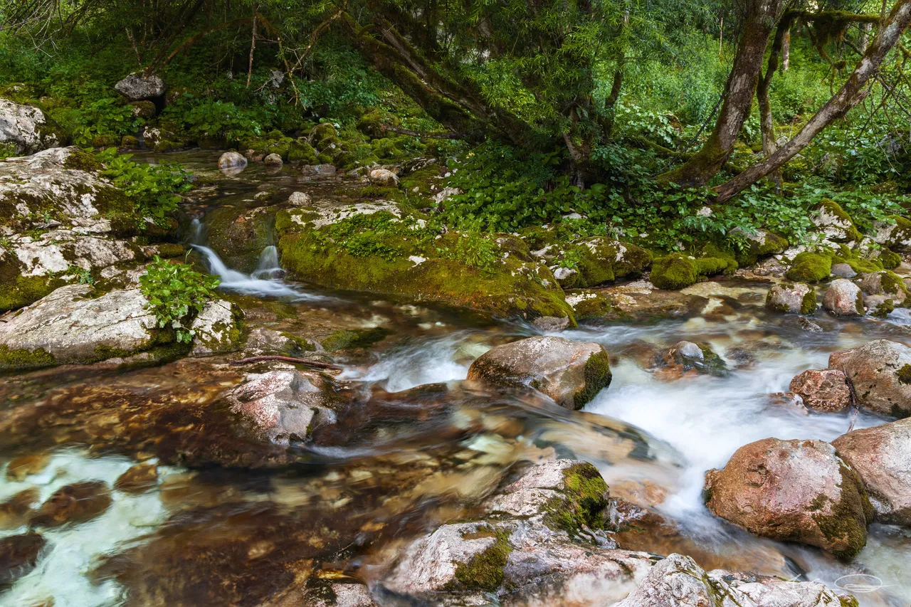 Again and again, the water plunges in small waterfalls cascading over the rocks.