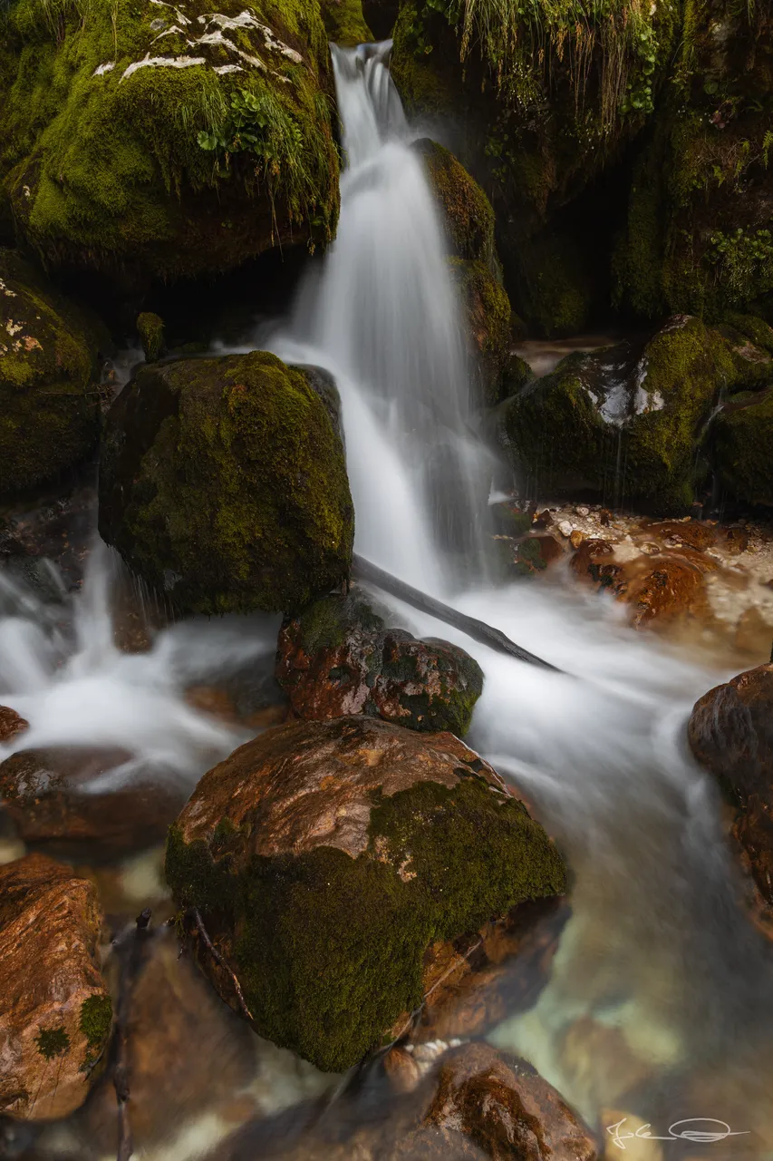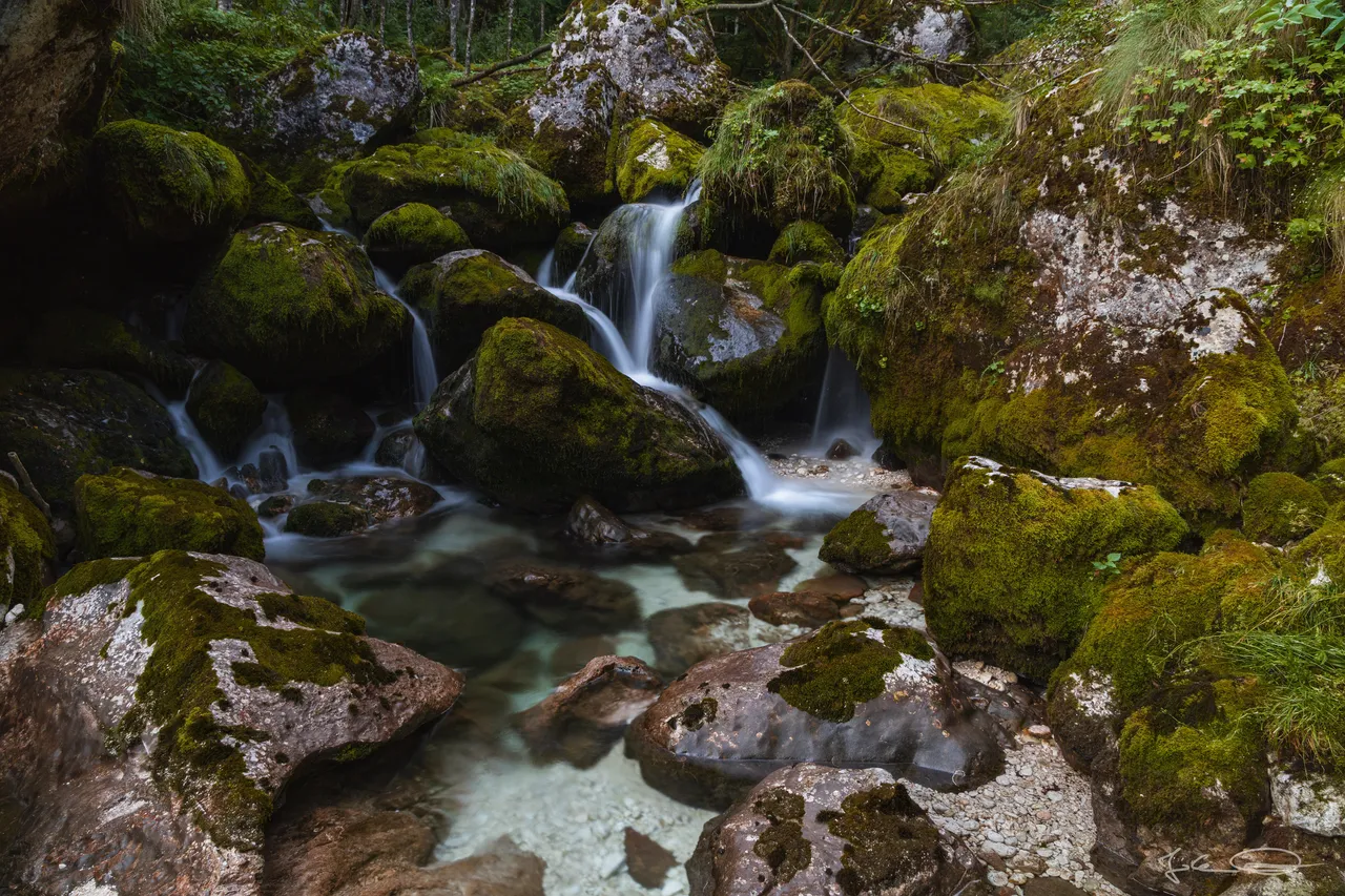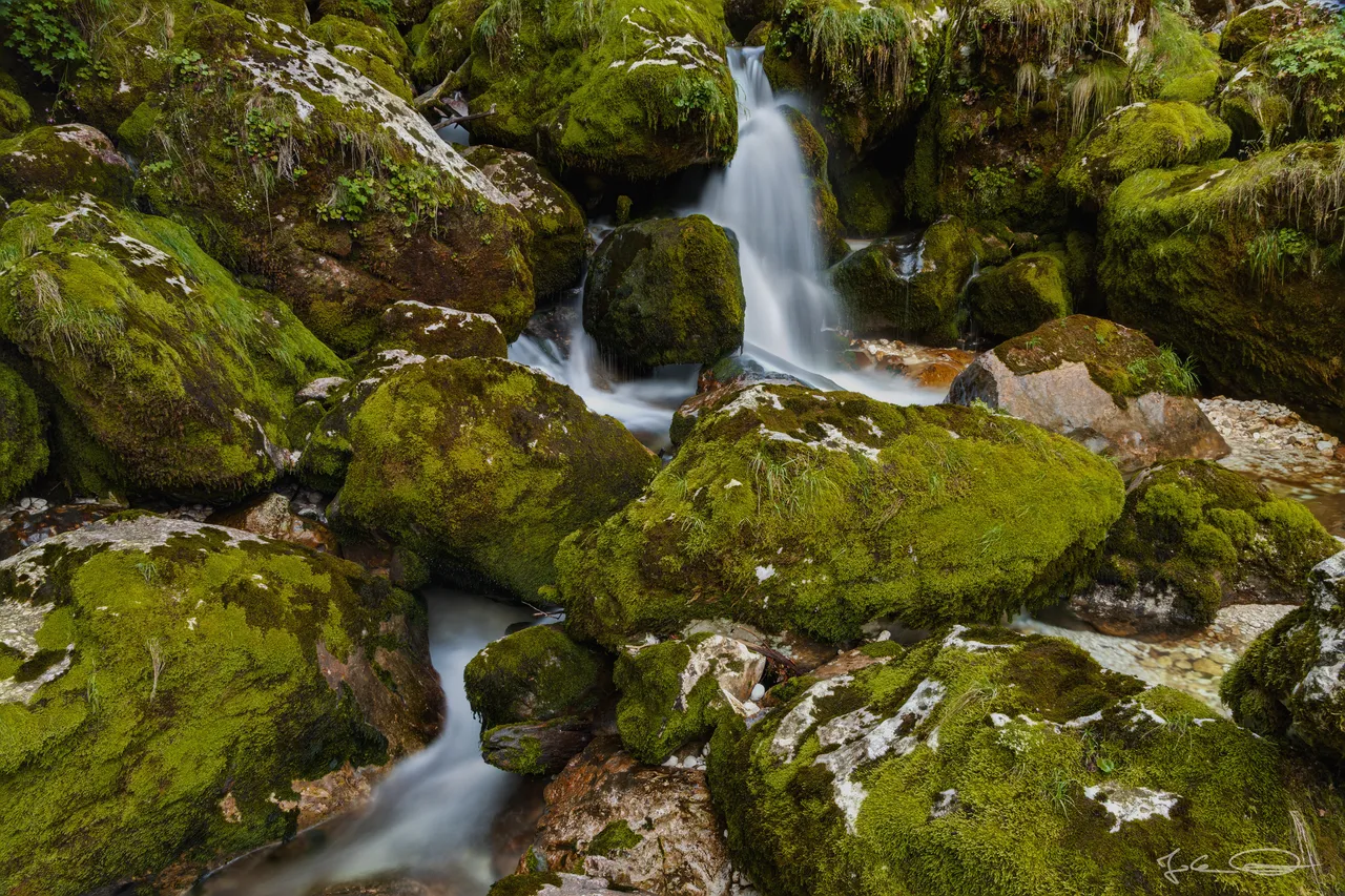 In the second part of my report from yesterday's trip to Slovenia I would like to show you more of the mossy rocks in the stream Šunik, over which the water flows in small waterfalls and cascades.