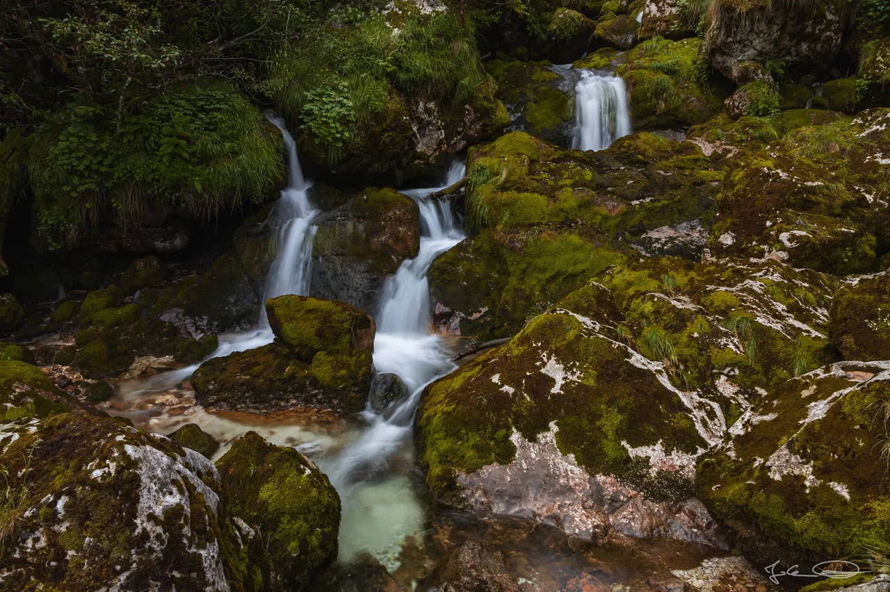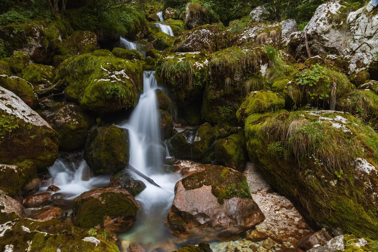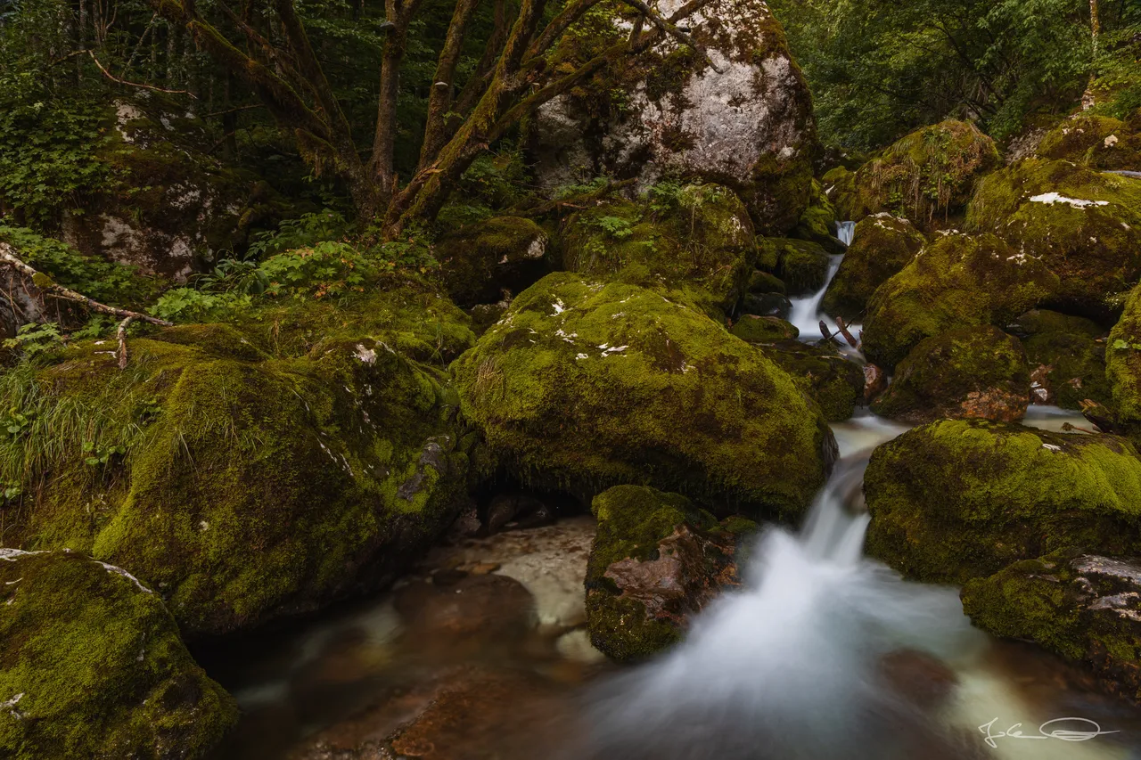 In the second part of my report from yesterday's trip to Slovenia I would like to show you more of the mossy rocks in the stream Šunik, over which the water flows in small waterfalls and cascades.