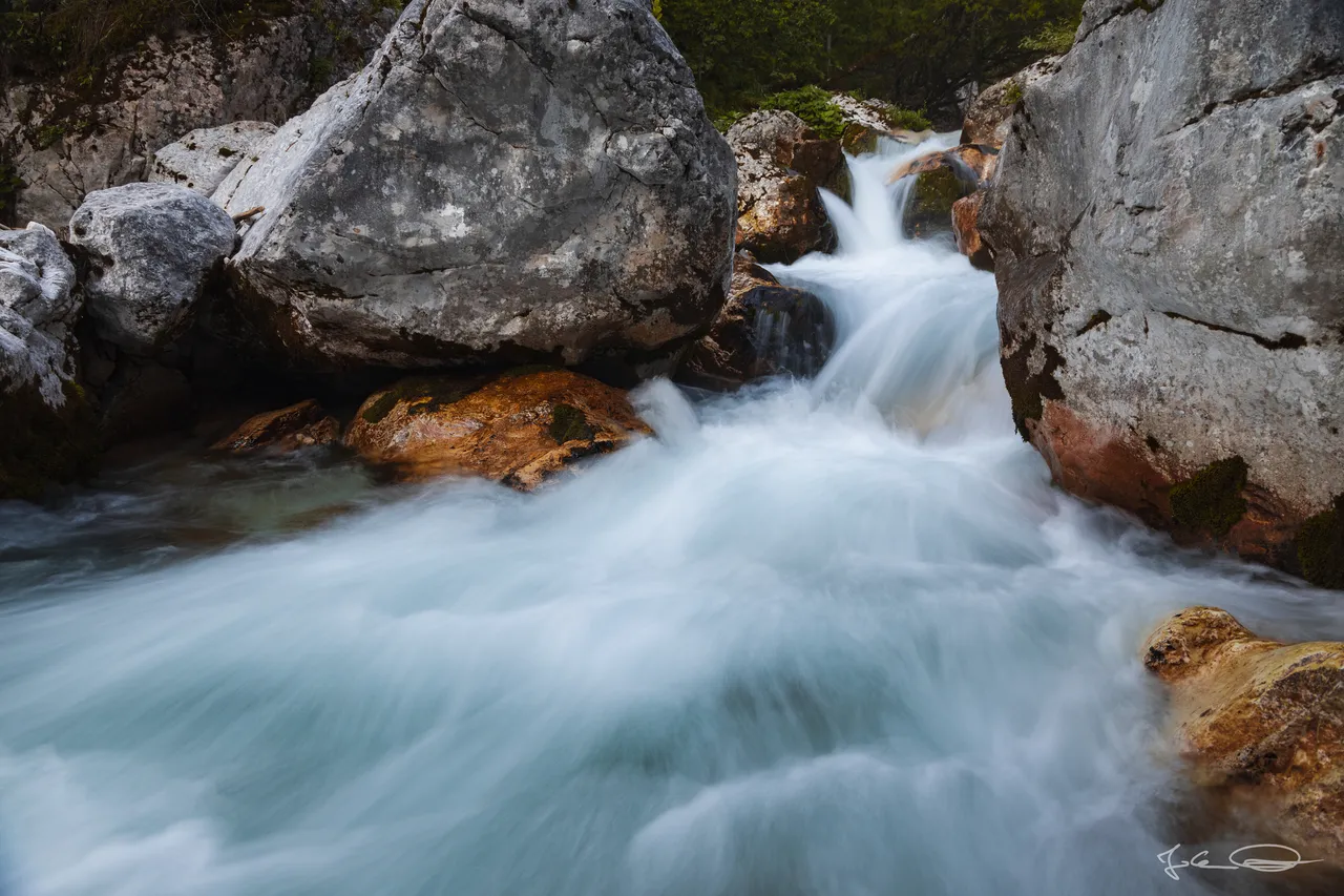Before I went on the Soča Trail towards the source, I took some photos of the river with a few smaller waterfalls, of which I want to show some today. | Bevor ich auf dem Soča Trail in Richtung Quelle gegangen bin, habe ich einige Fotos des Flusses mit ein paar kleineren Wasserfällen aufgenommen, von denen ich heute ein paar zeigen möchte. |