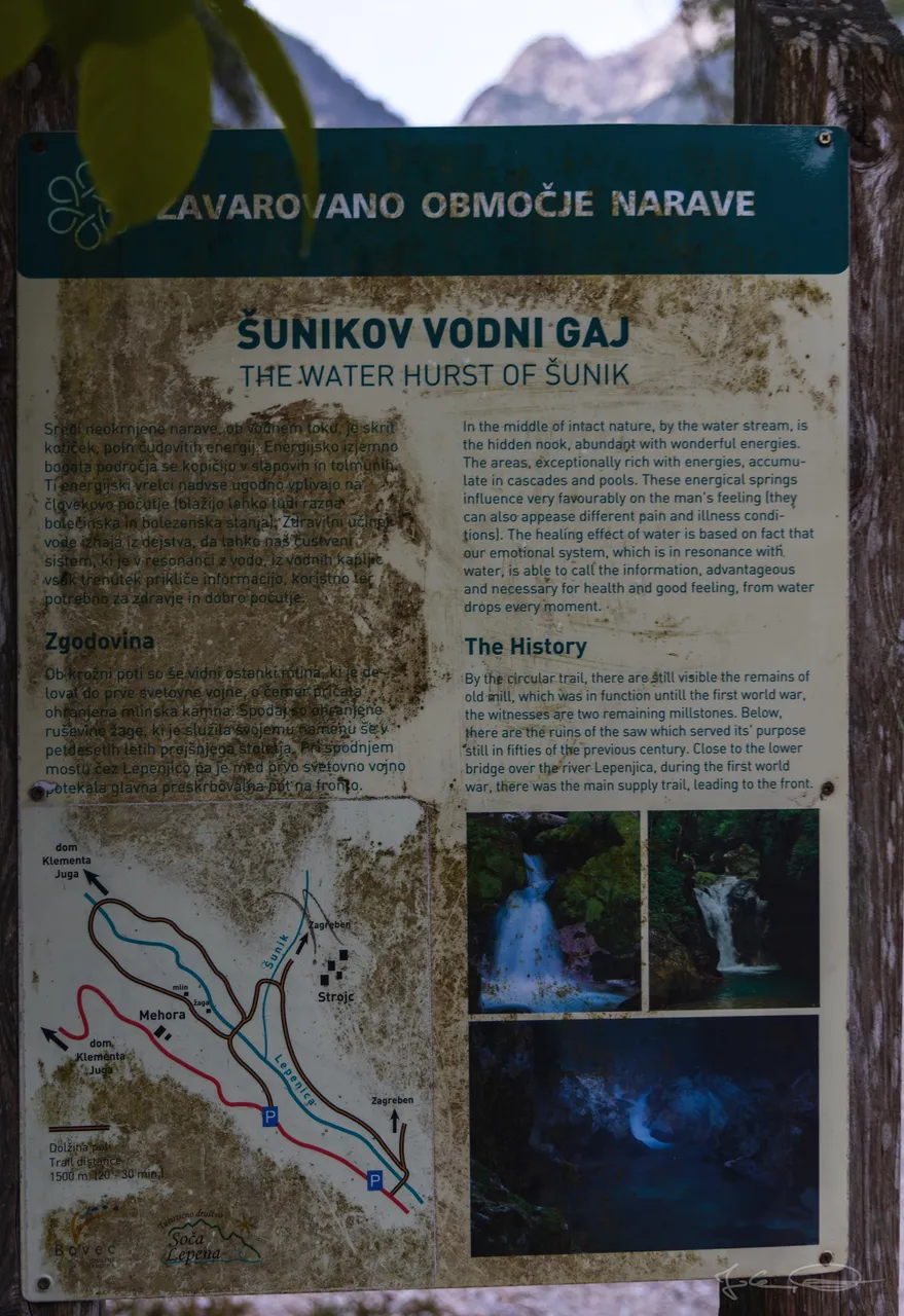 Today, after a few weeks, I finally made another trip to Slovenia to the Triglav National Park. I had decided to visit the Šunik water grove (Šunik water hurst - Šunikov vodni gaj) in the Lepena Valley and later the Mlinarica Waterfall in the Soča Valley. |