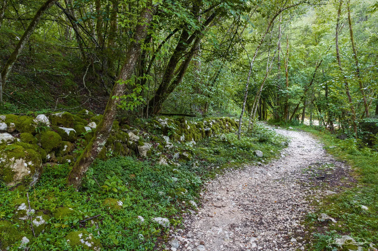 From the bridge you can either walk along the Lepenjica creek (clockwise or counterclockwise), which should take about 45 minutes, or after the bridge, turn right, after a few hundred meters cross the bridge over the Šunik stream and walk then either on the way along the creek, or you walk like I did right on and also in the creek. | Von der Brücke kann man entweder den Rundweg entlang des Baches Lepenjica gehen (im Uhrzeigersinn oder entgegen), welcher etwa 45 Minuten dauern soll, oder man geht nach der Brücke nach rechts, überquert nach ein paar hundert Metern die Brücke über den Bach Šunik und geht dann entweder am Weg entlang des Baches, oder man geht so wie ich direkt am und im Bach. |