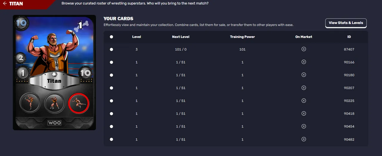 It is now possible to upgrade the WOO NFT. I picked out the Titan and leveled it to the highest level. Approximately 100NFT are required to reach the MAX level.