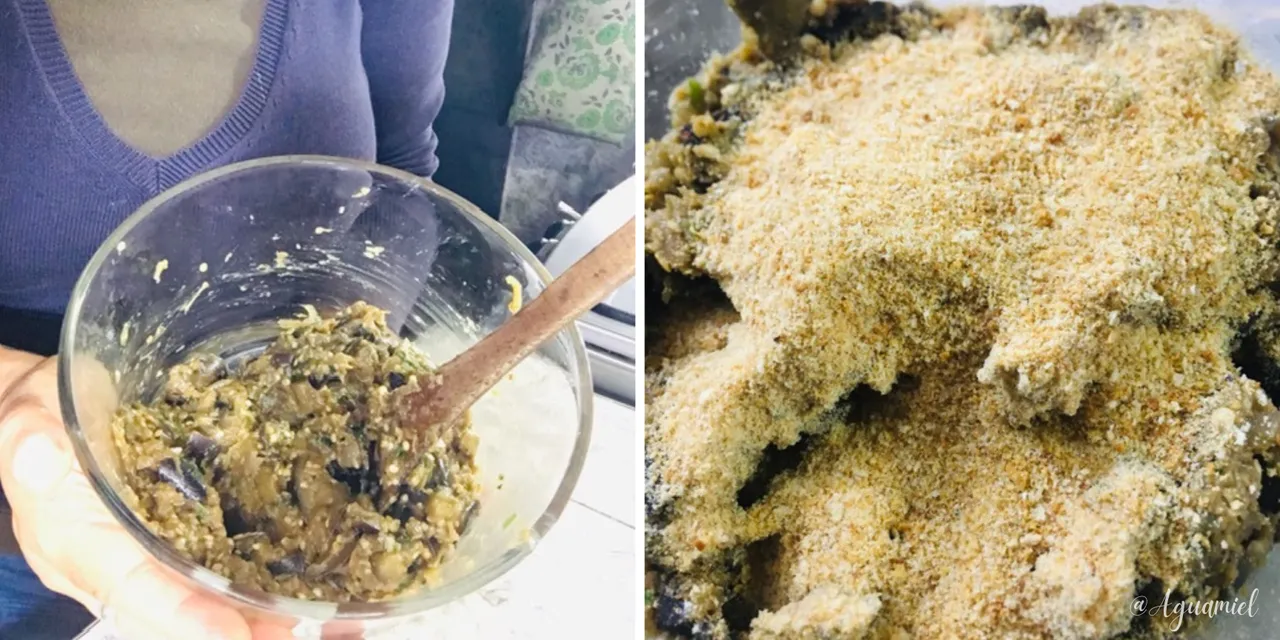 The cold eggplants are waiting for me to make meatballs... I add the breadcrumbs, forming a dough that allows me to create the balls, if it is too soft, I add more bread.