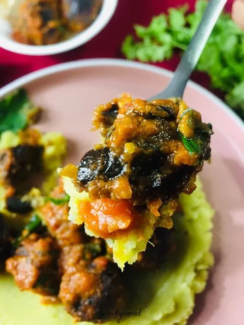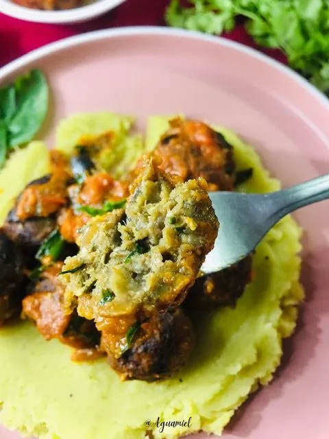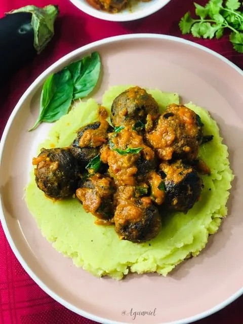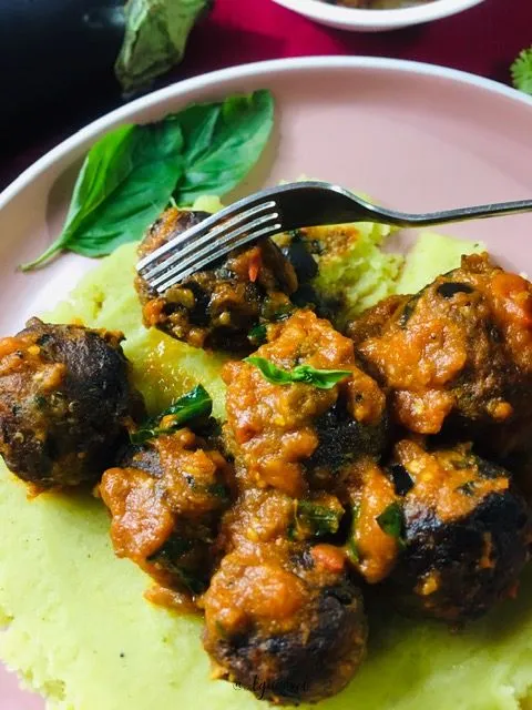 Today's chapter is entitled: Eggplant meatballs with sweet potato puree.