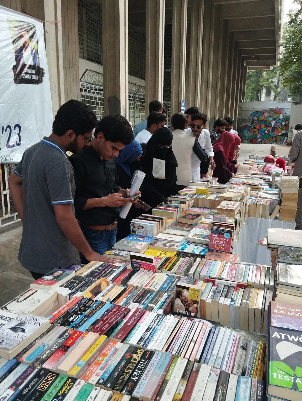 We had a plenty of time as there was only one class today and after that class we were free, so we just arrived there. We explored every single stall thoroughly as i am a student of English language and literature so, it was necessary for me to look for the best one. I asked my friend and he just replied me with that for now, stay focused on the stalls and see if we like some. And i said "OK!".