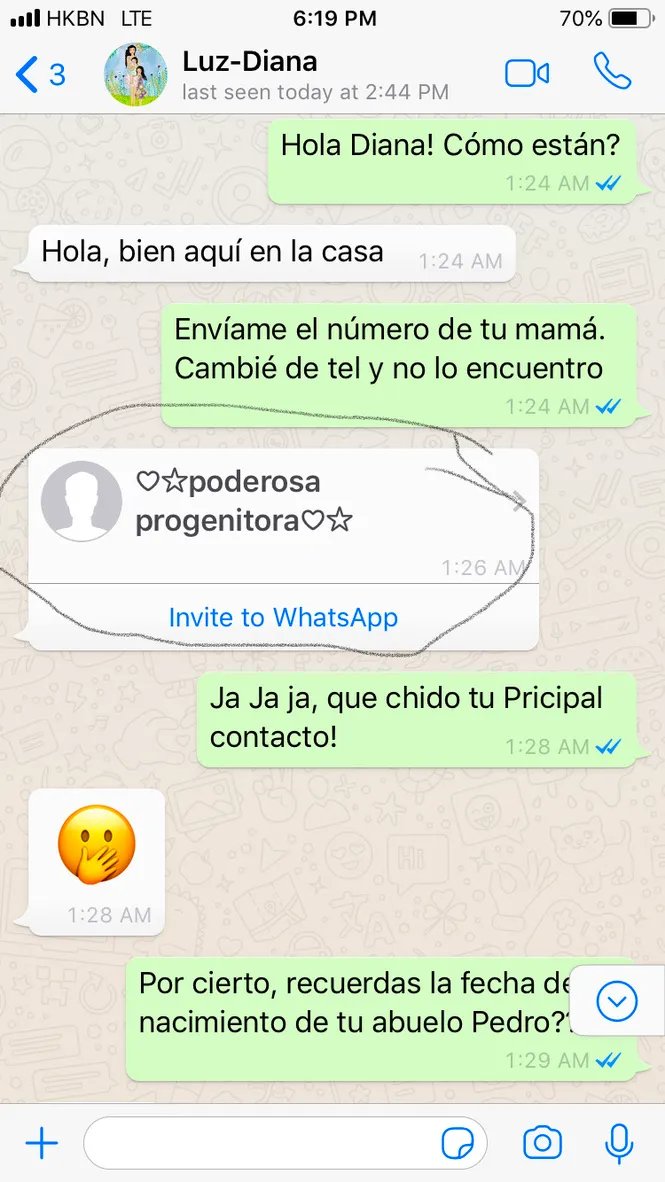 I ask my niece for my sister's number, as i have changed phone and i don't have her contact. It made me laugh her creative naming: Poderosa progenitora something like powerful progenitor (female).