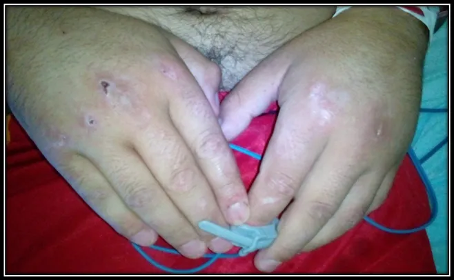 The periungeal ulcers, in the armpits, elbow or pressure zones, are usually signs of systematic vasculitis.