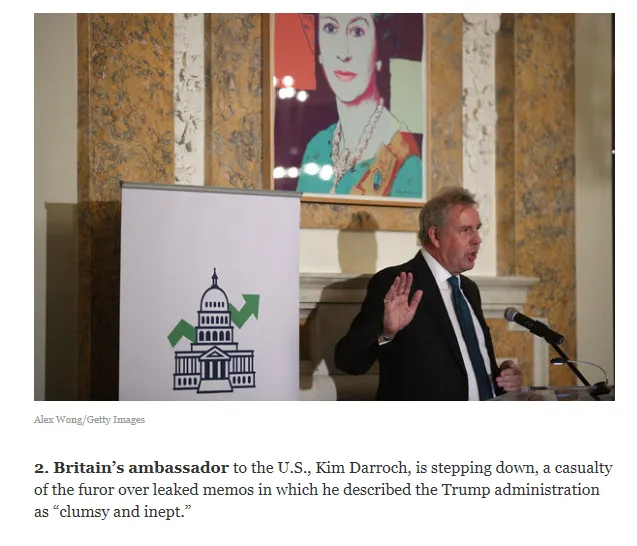 The British ambassador to the USA resigned after his memos criticizing Trump were leaked, that could be normal especially after he was not welcomed in a meeting with the US secretary of treasury the Israeli Mnuchen with visiting British Trade Minister.