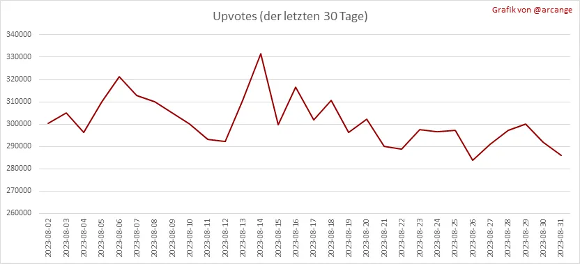 Diese Grafiken zeigen die Entwicklung der Kuration (Upvotes) über die gesamte Blockchain-Lebensdauer und der letzten 30 Tage.