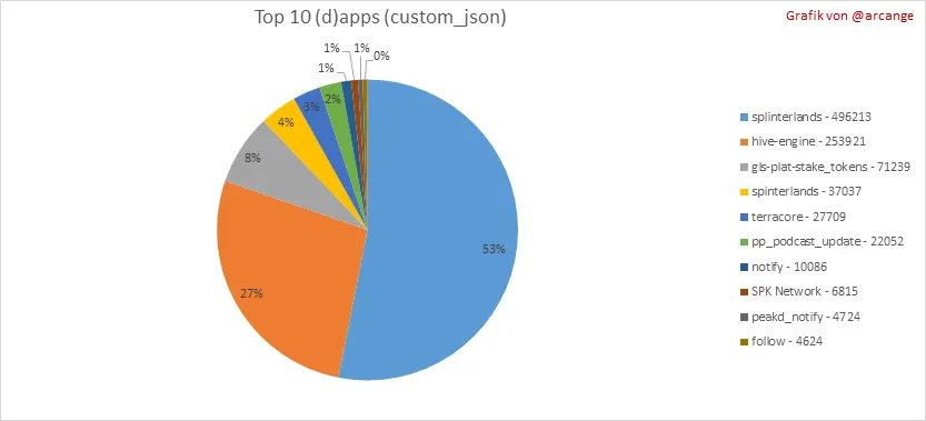 Dieses Diagramm zeigt, welche Apps die meisten Aktivitäten (custom_json-Operationen) in der Blockchain generieren.