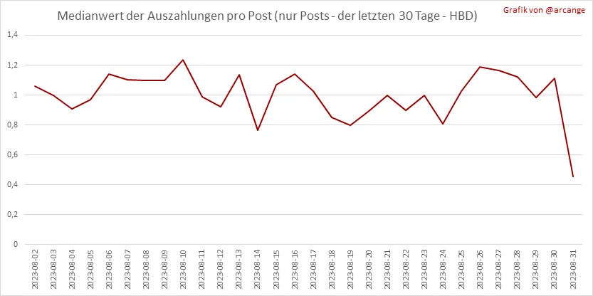 Diese Grafiken zeigen den durchschnittlichen Medianwert des Payouts pro Post der letzten 30 Tage.