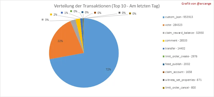 Diese Grafik zeigt die Verteilung der 10 wichtigsten Transaktionstypen nach der Anzahl der in der Blockchain ausgeführten Vorgänge.