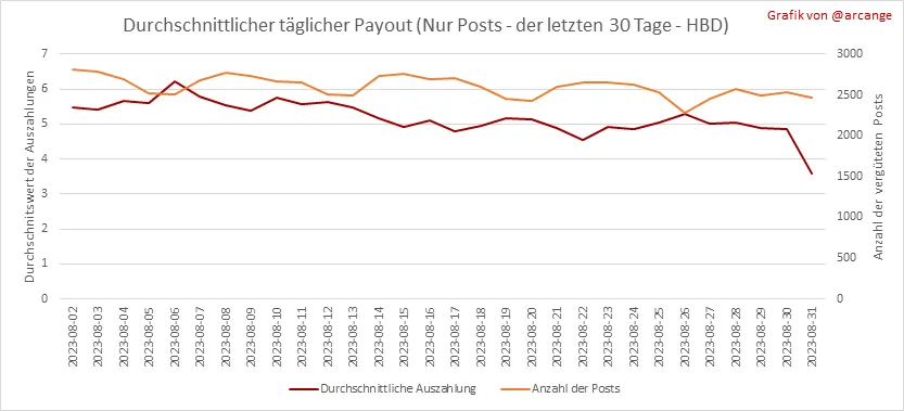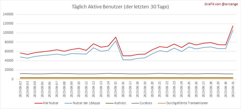 Alle in diesem Bericht enthaltenen Informationen basieren auf den Daten, die auf der Blockchain bis 2023-08-31 Mitternacht UTC gesammelt wurden. Ziel dieses Berichts ist es, einen klaren Überblick über die Vorgänge auf der Hive-Blockchain zu verschaffen.