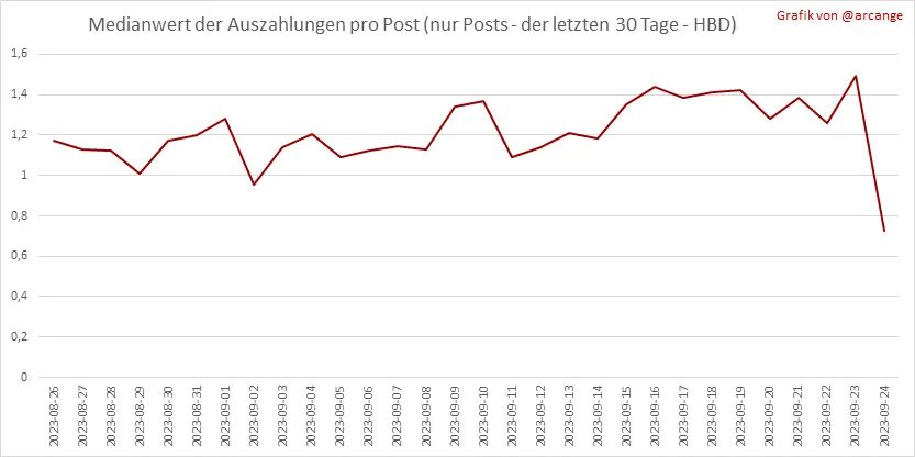 Diese Grafiken zeigen den durchschnittlichen Medianwert des Payouts pro Post der letzten 30 Tage.