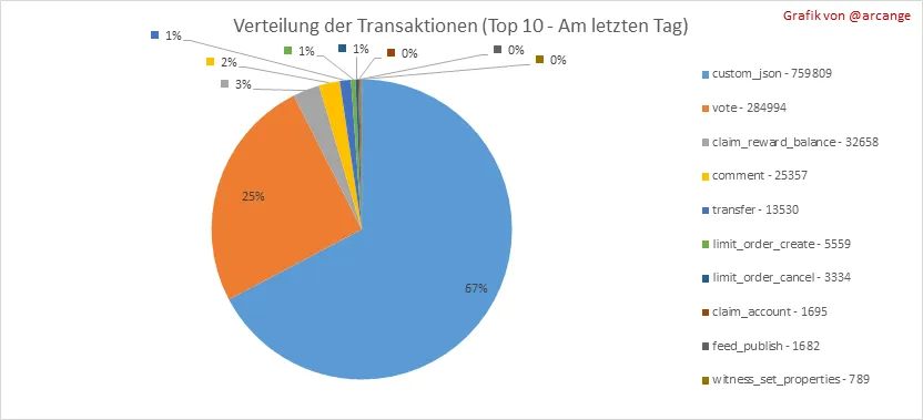 Diese Grafik zeigt die Verteilung der 10 wichtigsten Transaktionstypen nach der Anzahl der in der Blockchain ausgeführten Vorgänge.