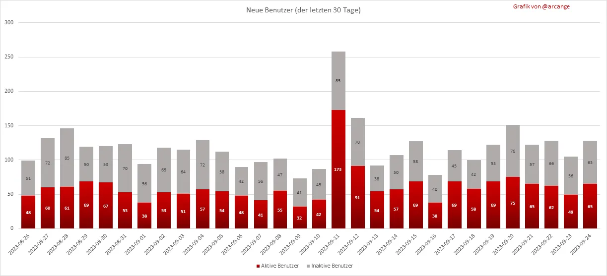 Der graue Teil jeder Spalte gibt an, wie viele Konten inaktiv sind (all Diejenigen, die in den letzten 30 Tagen nicht gepostet, kommentiert oder gevotet haben).