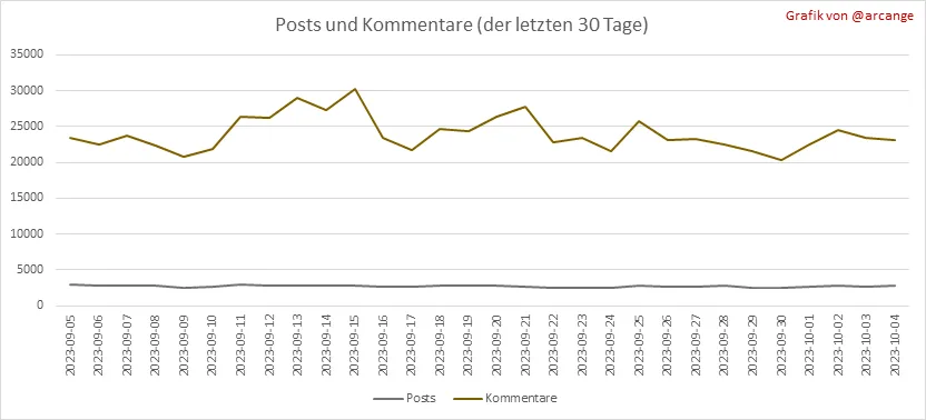 Diese Grafiken zeigen die Entwicklung von Posts und Kommentaren über die gesamte Blockchain-Lebensdauer und der letzten 30 Tage.